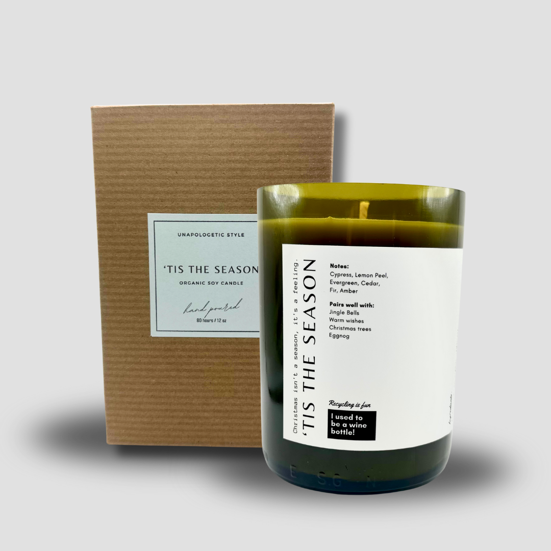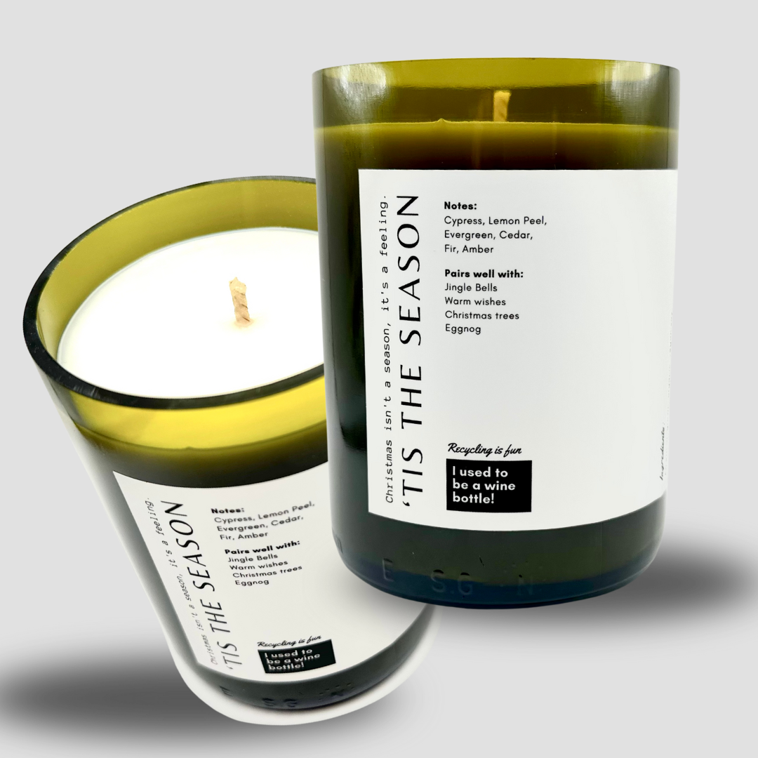 Poured into a once well-loved wine bottle, this candle brings bold attitude and effortless style to any space. Each vessel is uniquely repurposed, making every piece one-of-a-kind, sustainable with a little edge.